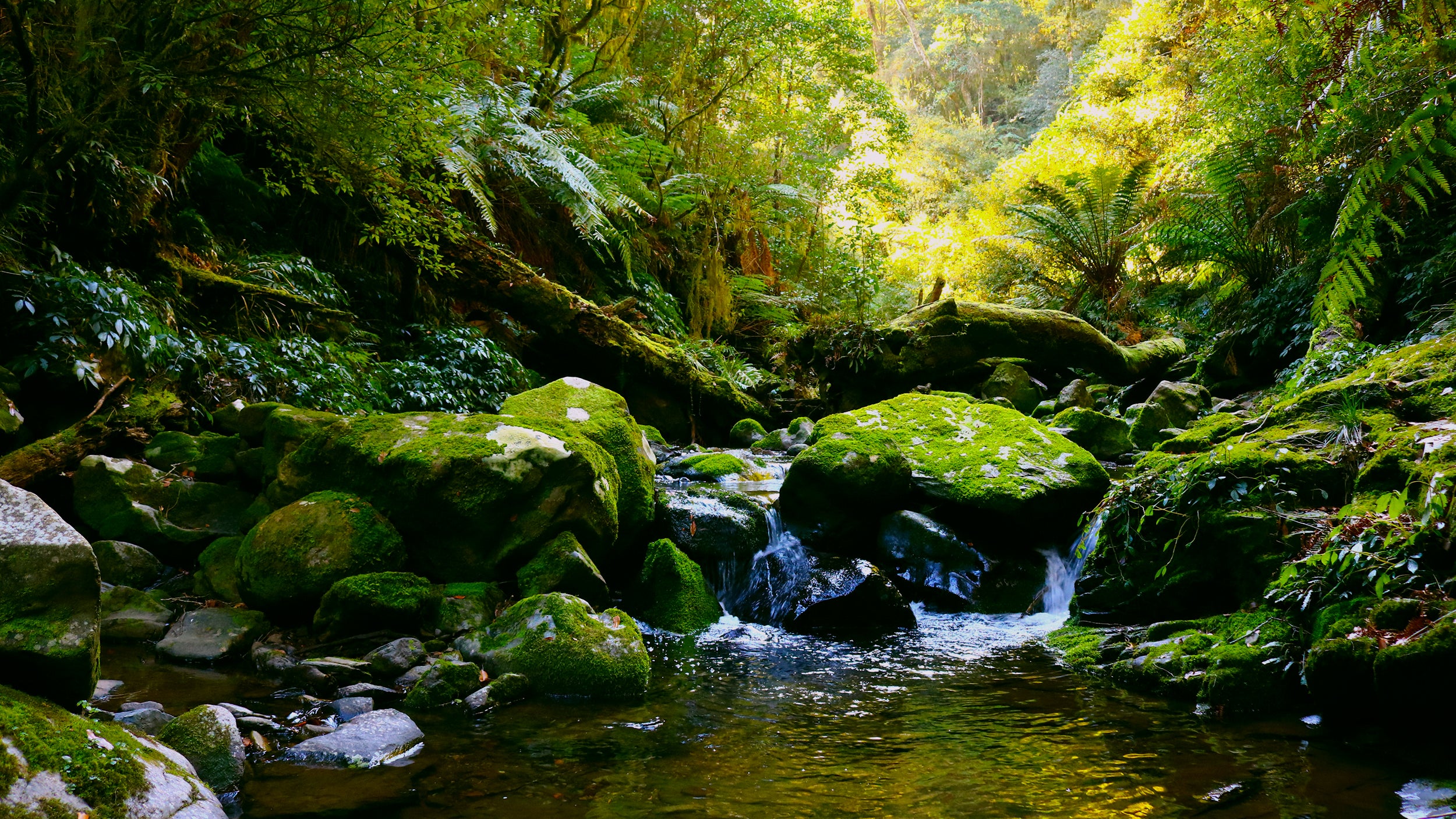 Misty rain fell gently on moss-covered earth, green and soft, with life in every step. The sound of flowing water, gentle winds, and the rustling of leaves from shrub-dwelling fairy wrens.